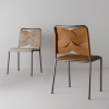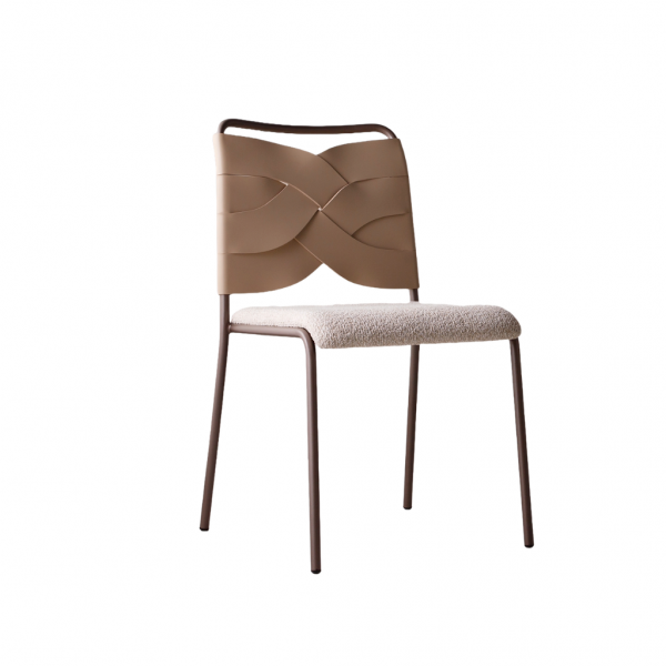 A estrutura metálica cria uma base firme e visualmente delicada, valorizando a proporção da peça, enquanto o encosto em soleta náutica adiciona textura e identidade ao conjunto.
