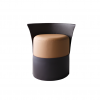 O Banco Tork combina volumes simples e materiais marcantes. O assento cilíndrico estofado é envolvido por uma faixa contínua de couro, que se eleva na parte posterior e cria um encosto sutil.